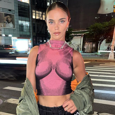 Νέα χειμερινή μόδα ντεκάλ T-Shirt Slim Fit εκτύπωση Crop Slim Tee λαιμό χωρίς μανίκια Top
