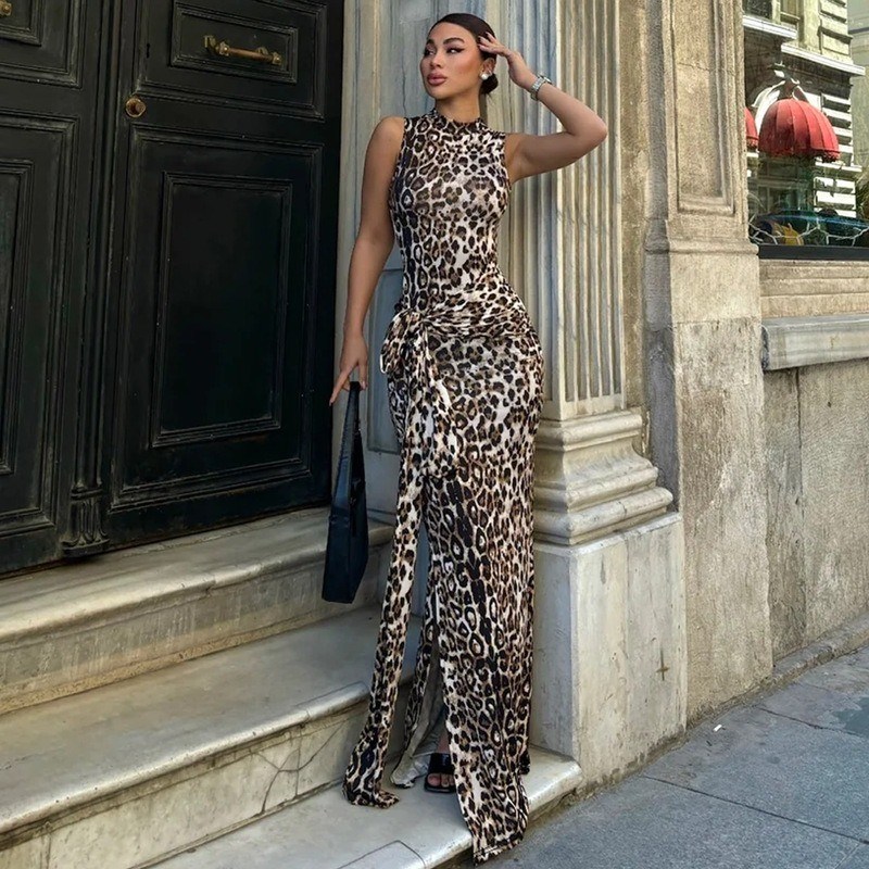 Νέα μόδα, εξατομικευμένη εκτύπωση, λεπτή ζώνη, σχισμή, χωρίς μανίκια.